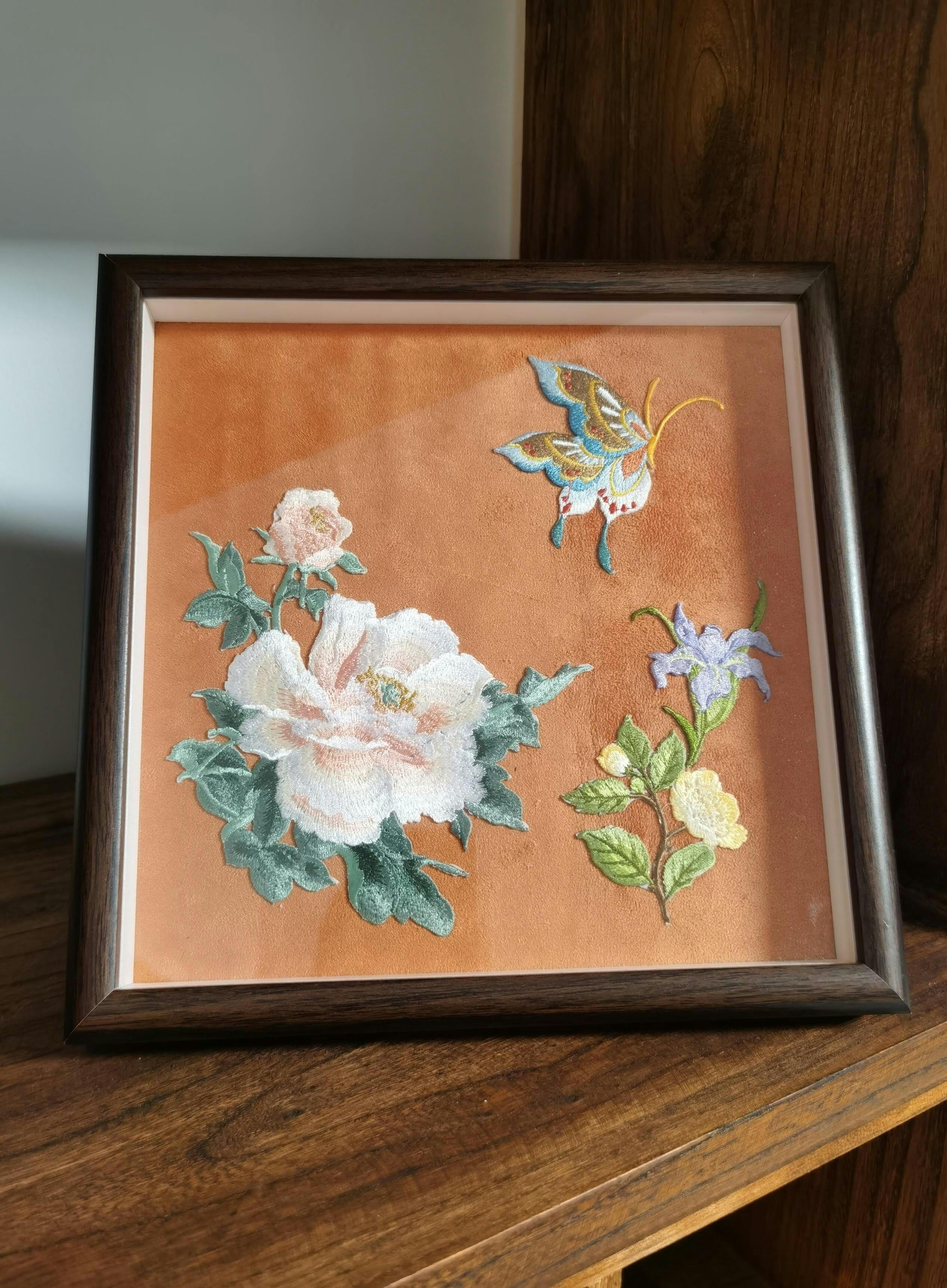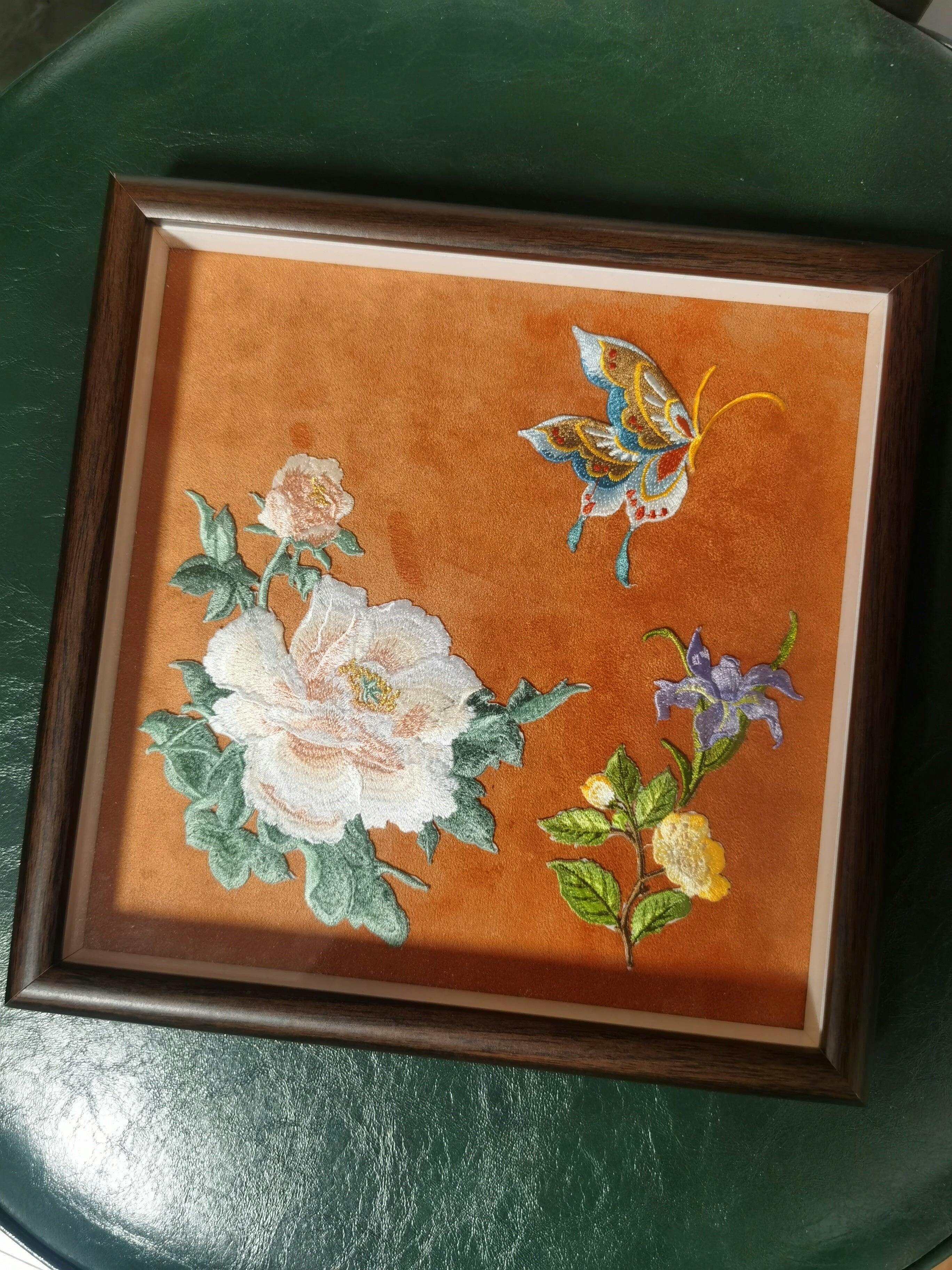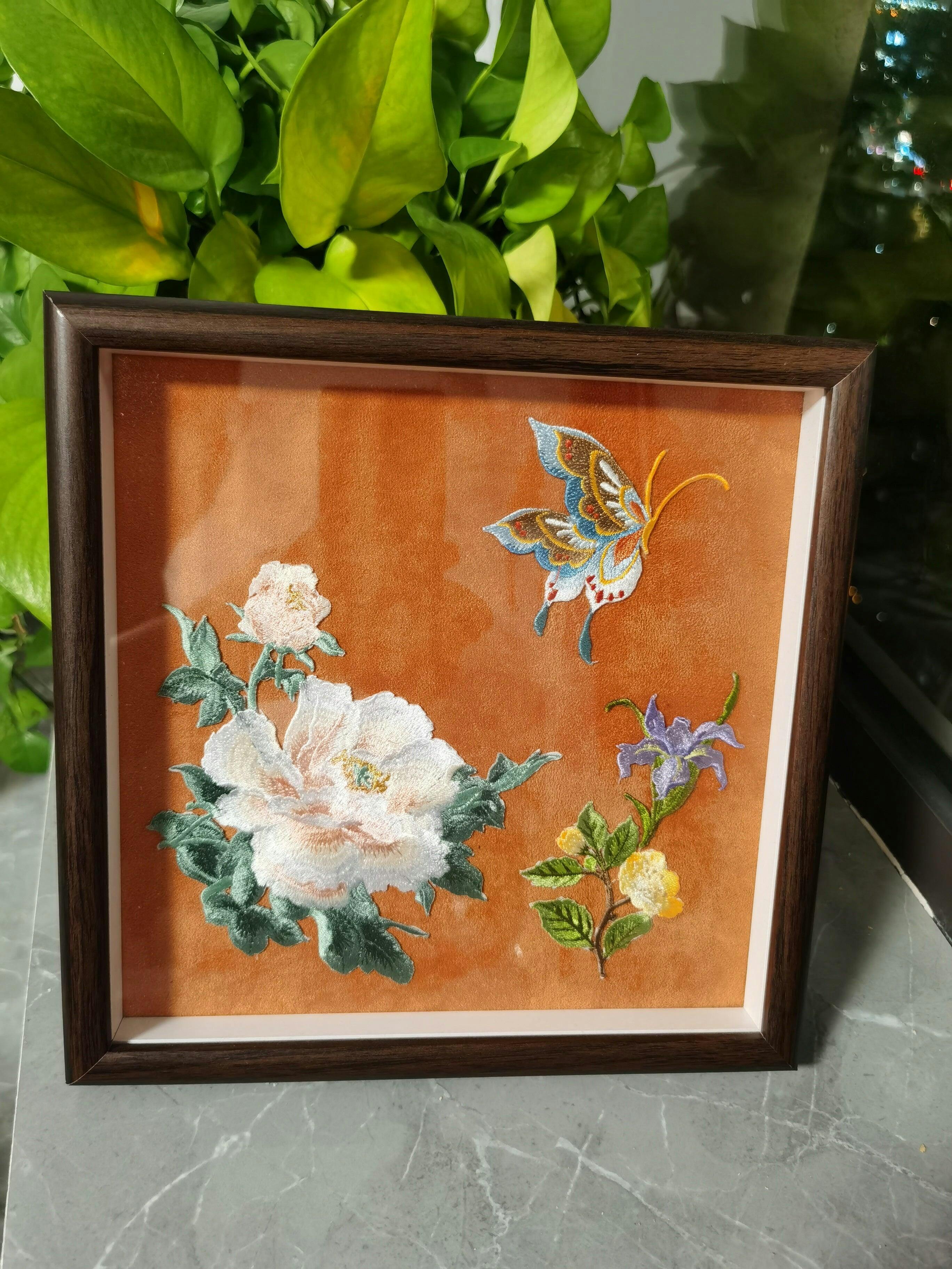 Exquisite embroidery, hand-framed on suede fabric, protected by clear glass and a frame. Suitable for wall hanging and desktop placement.