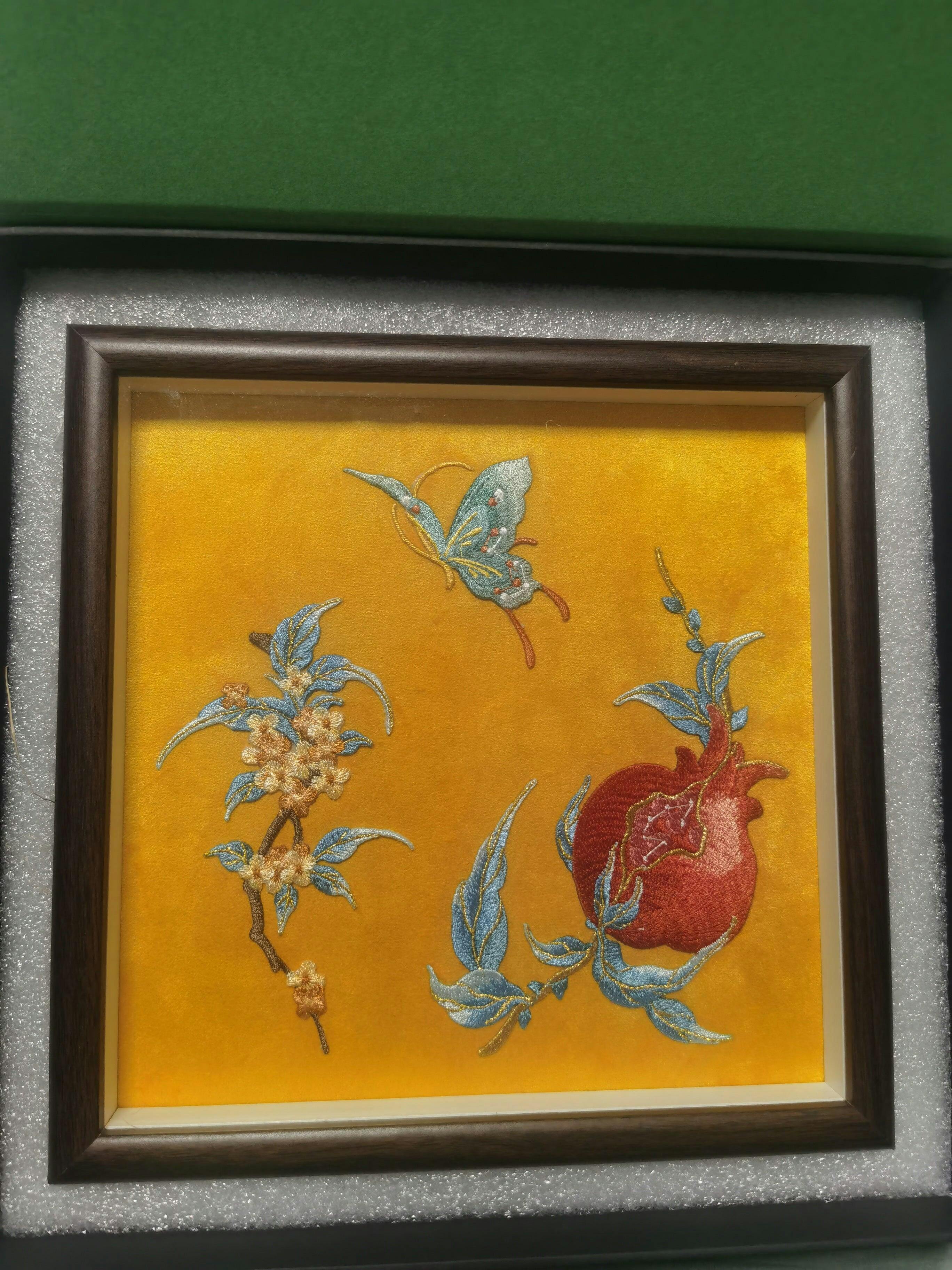 Exquisite embroidery, hand-framed on suede fabric, protected by clear glass and a frame. Suitable for wall hanging and desktop placement.